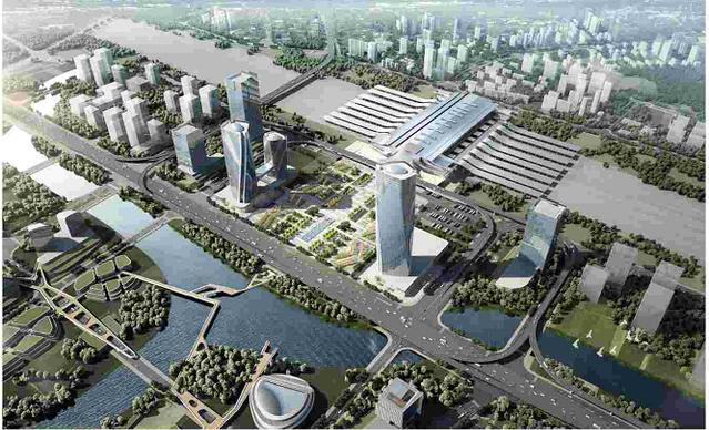 4、人行集散空間及地下服務(wù)設(shè)施,包括西廣場區(qū)域景觀,地下停車場、換乘大廳、商業(yè)空間及配套附屬用房等。